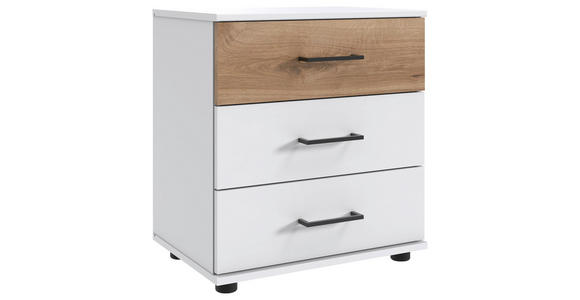 NACHTKÄSTCHEN 52/58/38 cm in Weiß, Plankeneiche