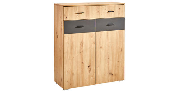 Das Dekor in Holzoptik in Artisan-Eichefarben sorgt für ein natürliches Ambiente, das durch einzelne Absetzungen in Anthrazit stilvoll abgerundet wird.