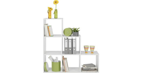 Ein Regal ist unverzichtbar, wenn Sie von Ihrer Familie und Freunden zu beinahe jeder Gelegenheit neue Dekoartikel bekommen? Doch wohin mit den ganzen Schmuckstücken? In diesem formschönen Regal kommen Ihre liebsten Wohnaccessoires besonders gut zur Geltung. 6 offene Fächer bieten Ihnen viele Möglichkeiten, um Vasen, Kerzen oder auch Bücher ins rechte Licht zu rücken. Das Regal in Weiß wird Ihnen gefallen!